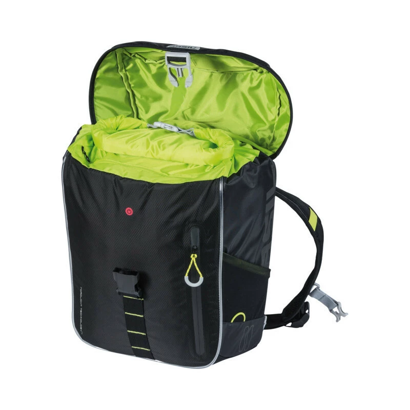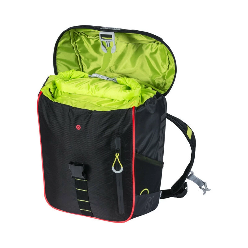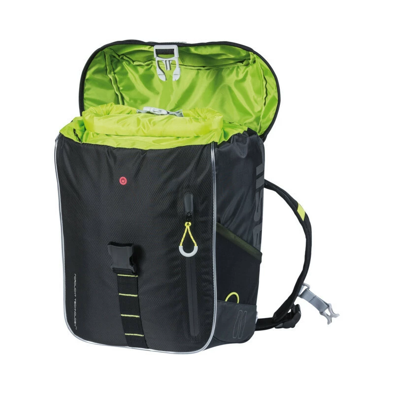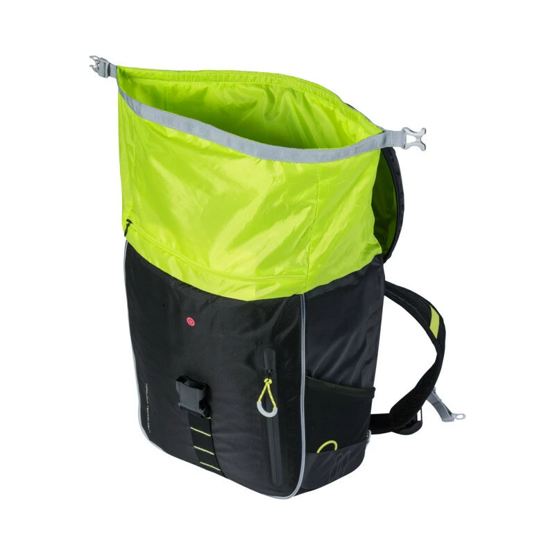 Der Basil Miles Daypack ist ein wasserdichter, schwarzer Fahrradrucksack, der bei Frauen und Männern gleichermassen beliebt ist. Der praktische Rucksack ist mit 17 Litern Inhalt ausgesprochen geräumig.