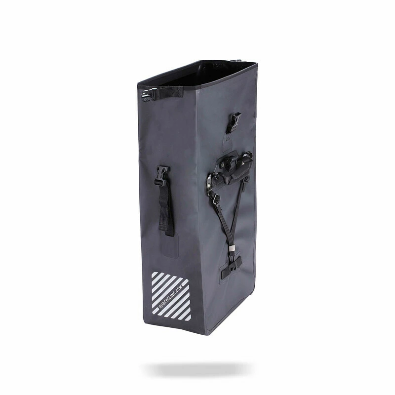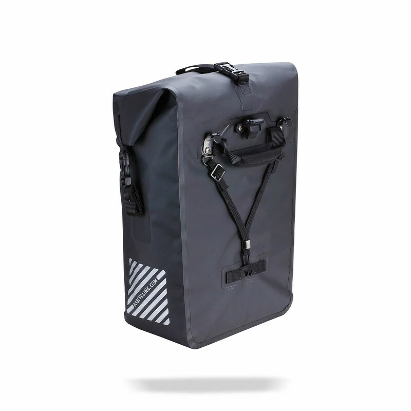 Wasserdichte Packtaschen mit Folding-Top. Hochfrequenzverschweisste Nähte. Einstellbares System zur Anbringung an Gepäckträgern mit einem Gestängedurchmesser von bis zu 16 mm. Reflektierende Aufdrucke an beiden Seiten. Innen befindlicher Organizer zur sicheren Unterbringung von Dokumenten oder Deinem Notebook. Volumen: 20-30 Liter. 755g. 32x50x22cm.