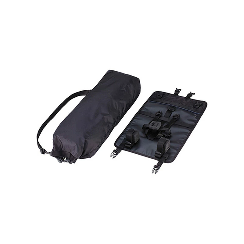 Leichtes Lenkergeschirr aus Nylon mit wetterfester Tragetasche. Drei Befestigungspunkte für optimale Stabilität während der Fahrt. Tasche mit Schnellverschluss-Schnallen abnehmbar, während das Gurtsystem am Lenker befestigt bleibt. Lenker-Spacer um Bremsen, Schaltung und Kabel frei zu halten. Passend für viele übliche Trockentaschen oder Zeltrollen. Wasserdichte Tragetasche 10L mit abnehmbarem Schulterriemen. Tragetasche: 60 x 15Ø cm (10L). Geschirr: 28 x 16 x 16 cm. Gewicht: 305 Gramm.