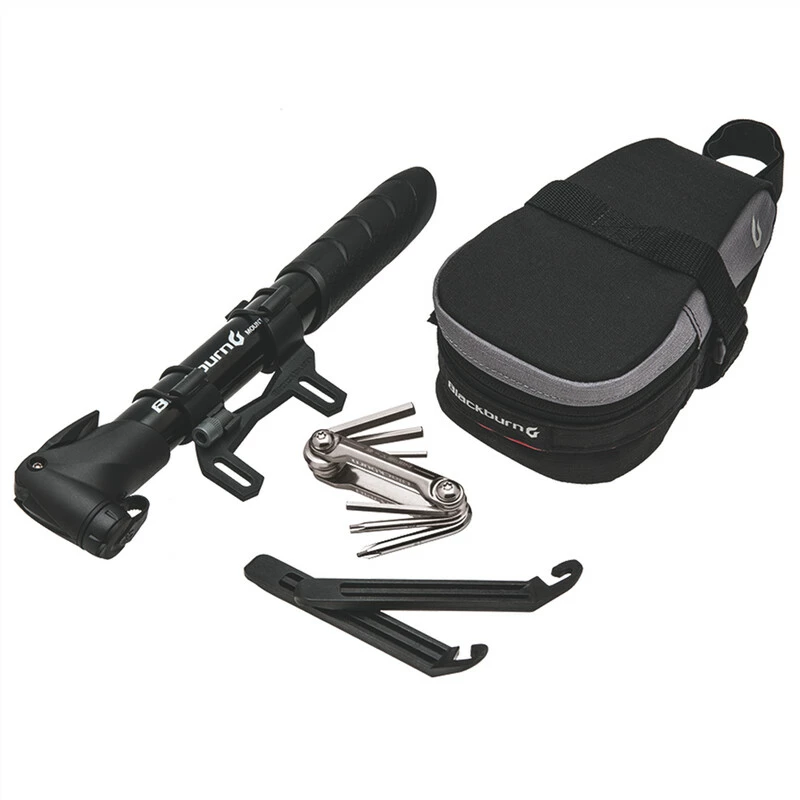 Set bestehend aus: GRID MTB Satteltasche, GRID 8 Multi-Werkzeug, 90 PSI/6 bar Mountain Mini- Pumpe, 2 Reifenheber.