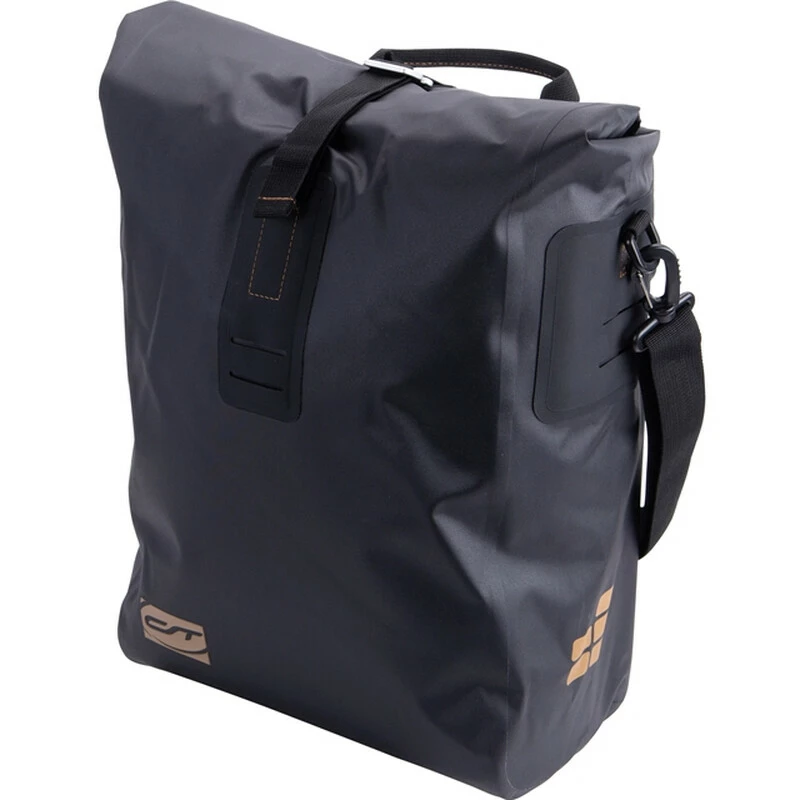 Einzeltasche “Single Waterproof” Wasserfest, sportlich, mit reflektierenden Elementen, mit grossem Hauptfach und einem kleinen Reissverschlussfach innen, hermetischer Rollverschluss, mit Farbakzenten an den Nähten, inkl. verstellbarem Schultergurt und Fahrradhaken.