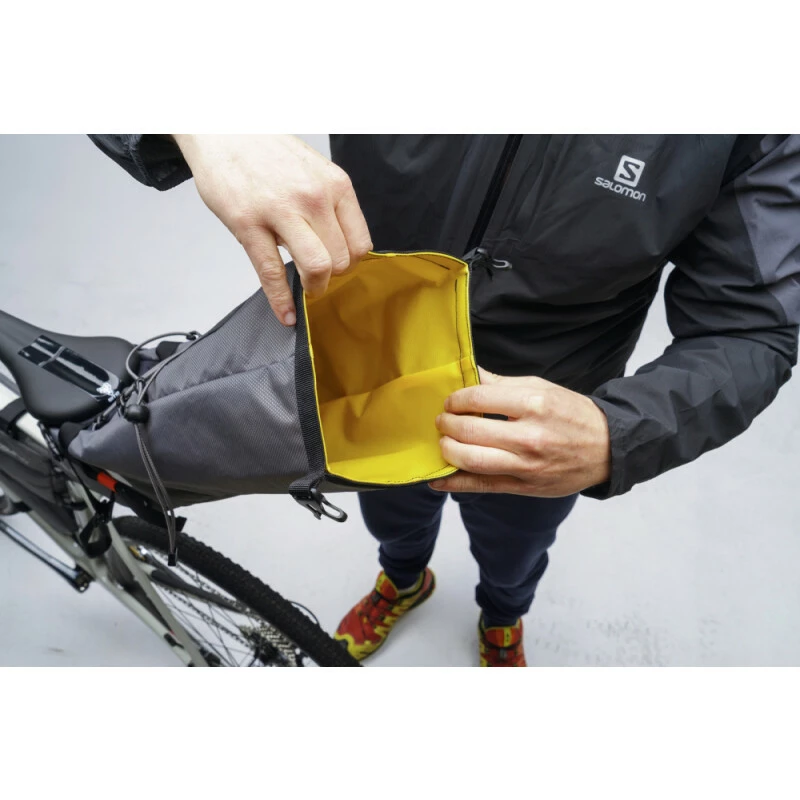 Die leichte Fahrradkönigin, die obligatorische Tasche für Ihre Touren ohne Packtaschen. Unser Befestigungssystem macht es wirklich stabil und vermeiden übermässige Balance, Zentralisierung Last Gewicht so weit wie möglich. Die innere PU-Beschichtung und die Ripstop-Innentasche garantieren Ihnen, dass kein Wasser in das Innere eindringt, was Ihre Reisegarantie ist. Verstärkte Paneele, gummierte untere Platte, verstellbares Gummiband zum Hinzufügen von Ladung und andere grosse Details, die uns erlauben, sicherzustellen, dass Sie eine der am meisten empfohlenen Satteltaschen auf dem Markt haben.