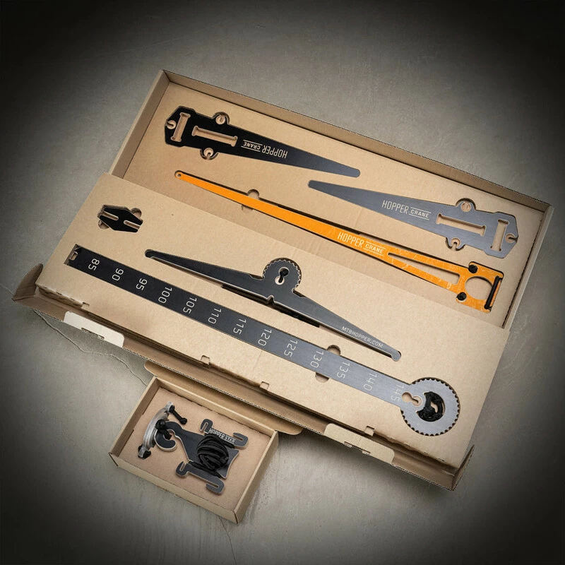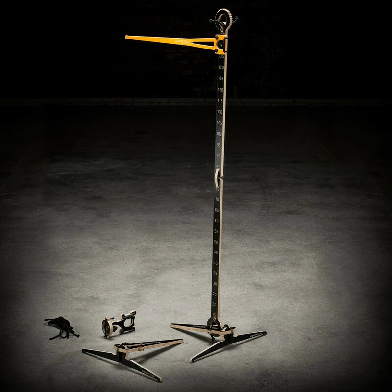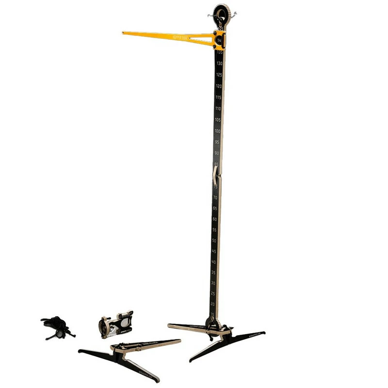 Das Produkt umfasst zwei Ständer, einen Handyhalter und eine Sprungstange. Der Kran hat in alle Richtungen verstellbare Beine, die sich an steile Hänge, steinige Oberflächen und jedes Gelände anpassen. Dieses Produkt ist sehr stabil – selbst wenn der Kran mit einem Rad umgestoßen wird, kann er sofort wieder an der gleichen Stelle und in der gleichen Höhe wie vorher aufgestellt werden. Die Höhe der Sprungstange ist einstellbar. Dieses Produkt ist auch sehr flexibel – es wird nicht durch einen Schlag mit einem Fahrradrad gebrochen. Durch die Kombination der beiden Ständer zu einem mit einer speziellen Verbindung kann das Kartell bis auf 1,45 m Höhe angehoben werden.