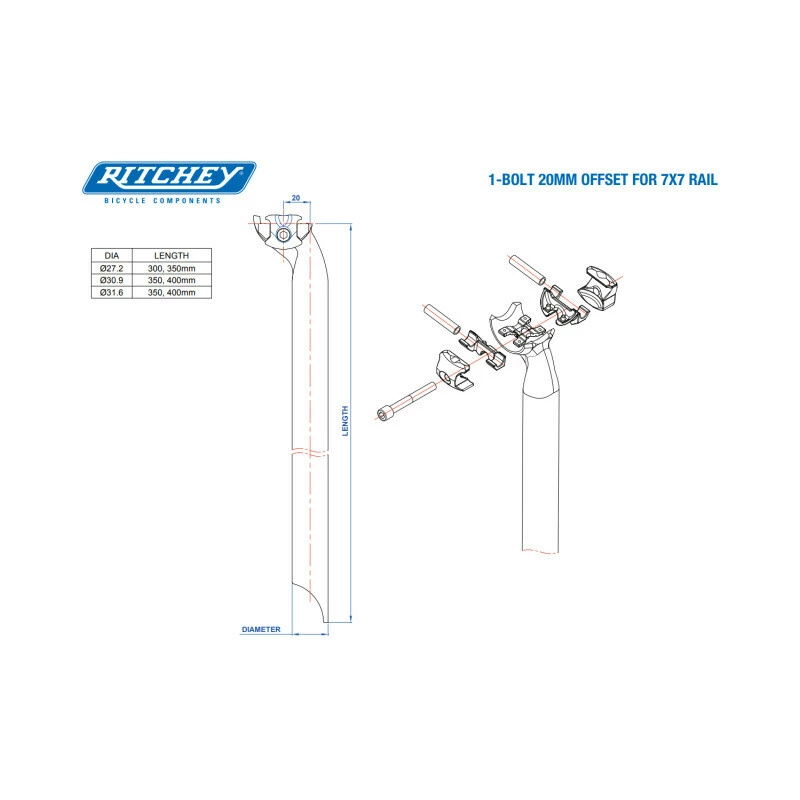 Das schlanke Design und die Funktionalität der WCS Single Bolt Sattelstütze sind die Markenzeichen von Ritchey. Die seitliche Klemmung mit nur einer Schraube bietet einfache Einstellbarkeit und Sicherheit in einer Stütze.