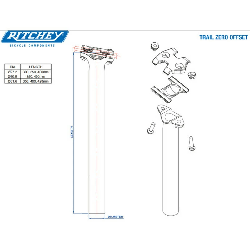 Ritchey Sattelstütze WCS TRAIL Zero 31.6mm, Blatte Black, 400mm