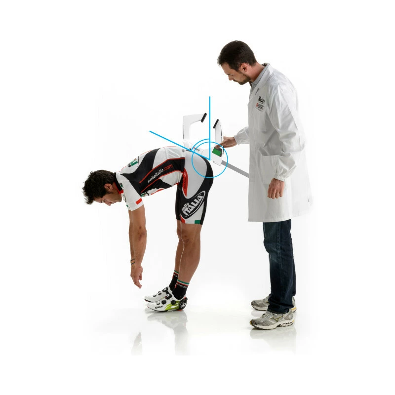 Die Positionierung der Stützen an der Basis des Messgeräts in der Sakralebene ermöglicht die Messung der Beckenneigung. Anhand dieser Daten lässt sich feststellen, welche Art von Sattel mehr Komfort bietet.