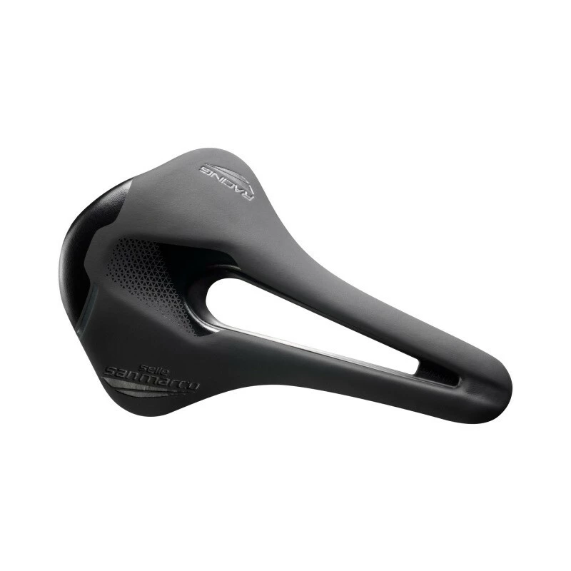 Der San Marco Sattel Shortfit Racing 2.0 Narrow wurde entwickelt, um die Bedürfnisse der anspruchsvollsten Athleten zu befriedigen, die bei bestimmten Trainingsarten oder beim Treten mit dem Oberkörper viel drehen und sich nahe am Lenker bewegen. Die besondere ergonomische Form dieses neuen Sattels, die sich durch eine reduzierte Länge auszeichnet, garantiert eine korrekte Unterstützung im grosszügigen hinteren Teil und eine ausgezeichnete Druckverteilung im vorderen Teil. Das grosse zentrale Loch (Open-Fit) sorgt für maximalen Komfort und Unterstützung in den verschiedenen Pedalsituationen und über die gesamte Länge des Sattels. Dadurch wird die Durchblutung gefördert und der Druck im Prostatabereich entlastet. Diese Eigenschaft ist besonders für Radfahrer mit guter Beckenrotation und für die weibliche Benutzerin wichtig. Der Sattel zeigt das seitliche Profil der identifizierbaren Sitzfläche mit einer gekrümmten Linie mit einer zentralen Vertiefung von mehr als 5 mm und wird daher als gewellt klassifiziert. Diese Besonderheit macht den Sattel auch für Personen mit flachem Rücken (Retroverso-Becken) besonders bequem, um eine korrekte Haltung mit dem Fahrrad zu ermöglichen.