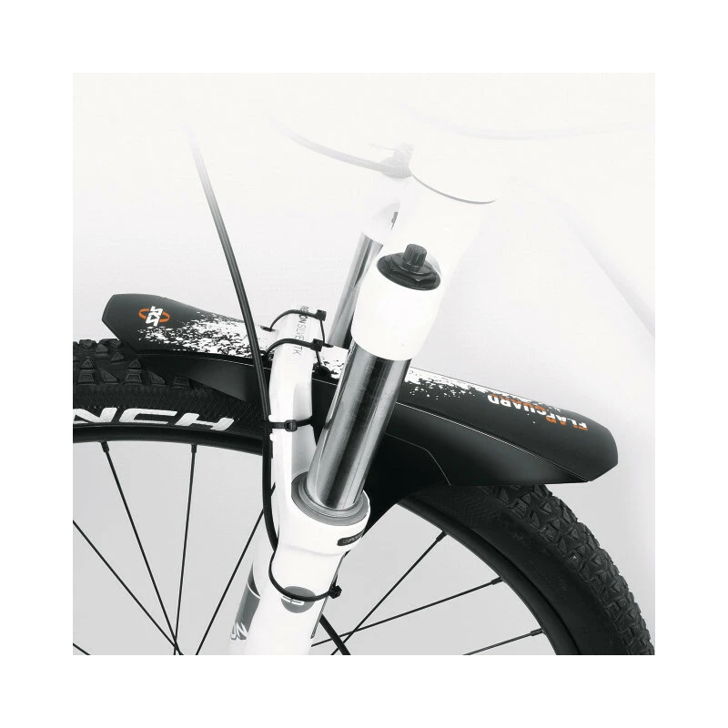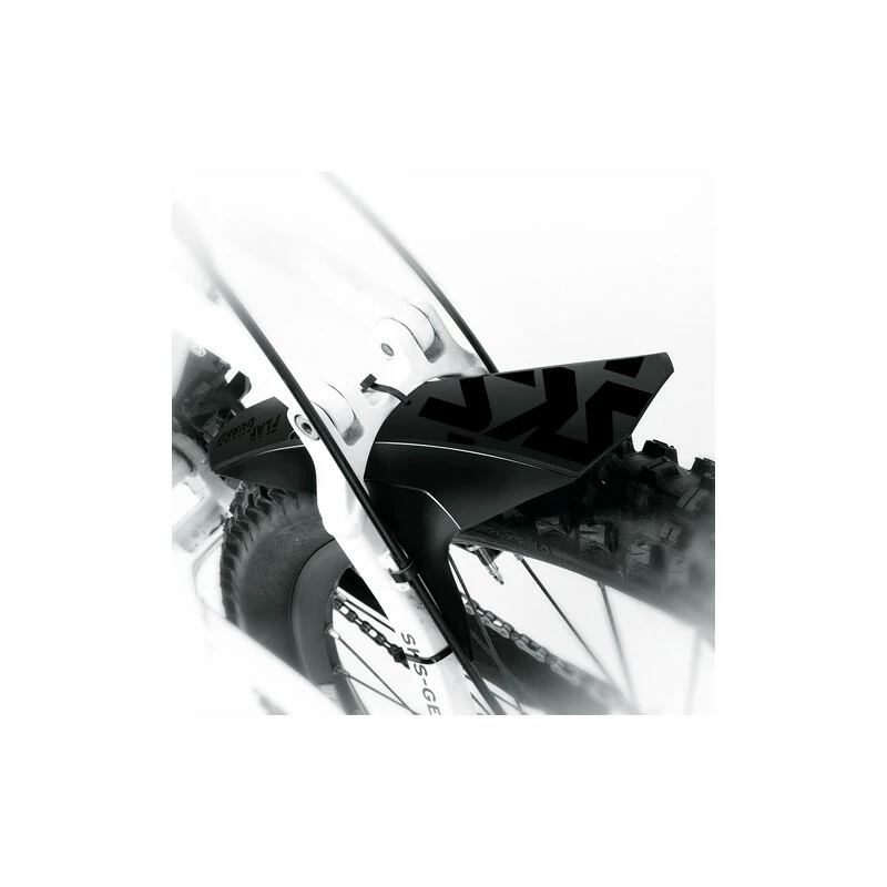Das Schutzblech ist aus weichem, aber robustem Hochleistungskunststoff gefertigt, sodass es flexibel sowohl an der Gabel als auch am Hinterbau anhand der mitgelieferten Kabelbinder montiert werden kann.