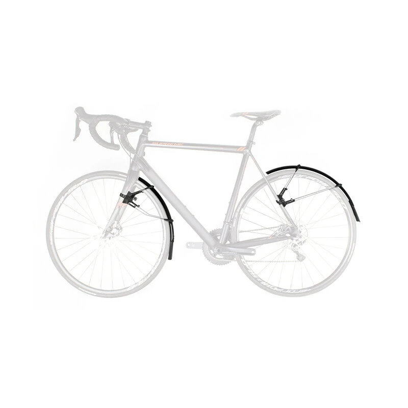 Das ultimative Clip-On-Radschutz-Set für Rennräder und Cyclocrosser mit einer Reifenbreite zwischen 25 und 32mm. Das einfache, zweigelenkige Quick-Release-Befestigungssystem passt auch auf Aero-Gabeln und bei Scheibenbremsen. Die Radschützer können durch Verstellen der Strebenlängen perfekt an den Radius der Reifen angepasst werden. Der superleichte, extra-lange Spoiler bietet zusätzlichen Spritzschutz. Eine Kratzschutzfolie zählt ebenfalls zum Lieferumfang. * Scheibenbremsenkompatibel: Bitte Bremszugführung beachten.