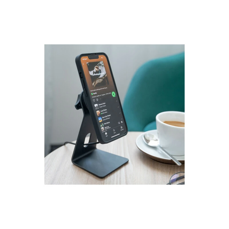 Die neue Home Base für dein Smartphone. Mit dem Charging Office Stand holst du dir eine praktische Telefonhalterung auf deinen Tisch. Ob im Büro oder Home Office: Befestige dein SPC+ Phone Case einfach magnetisch an der Schreibtisch Handyhalterung und lade dein Smartphone direkt am Handyständer schnell und sicher induktiv auf. Der Charging Office Stand punktet mit 15 Watt Leistung, ist vollständig MagSafe kompatibel und garantiert einen sicheren Stand.
