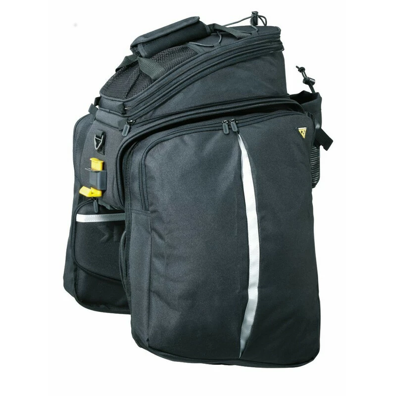 Das neue Design lässt Topeaks größte Packtasche in kompakter, formschöner Gestalt erscheinen. Mit einem Hauptfach, zwei ausklappbaren Seitenfächern und einem Gesamtvolumen von ca. 22.6 Litern, bietet der MTX Trunkbag DXP mehr als genug Stauraum für die wichtigsten Begleiter einer Radtour. Ein zusätzlicher Flaschenhalter wurde außen an der Tasche angebracht. Die Reflekotorstreifen auf der robusten Polyesteroberfläche sorgen für zusätzliche Sicherheit, auch bei schwierigen Lichtverhältnissen.