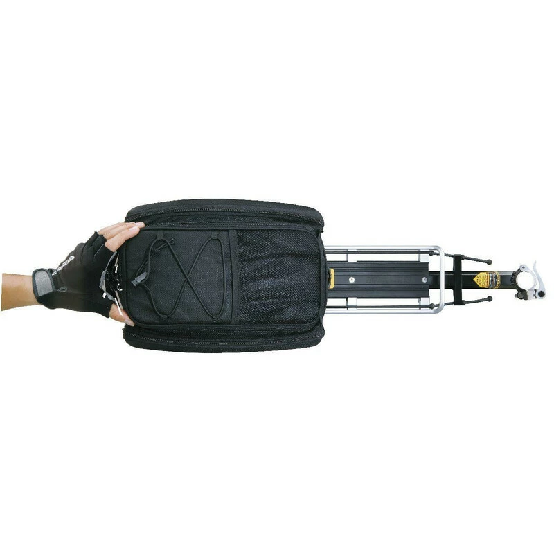 Die Befestigung der Tasche erfolgt durch das MTX Qick Track Gepäckträgersystem von Topeak.
